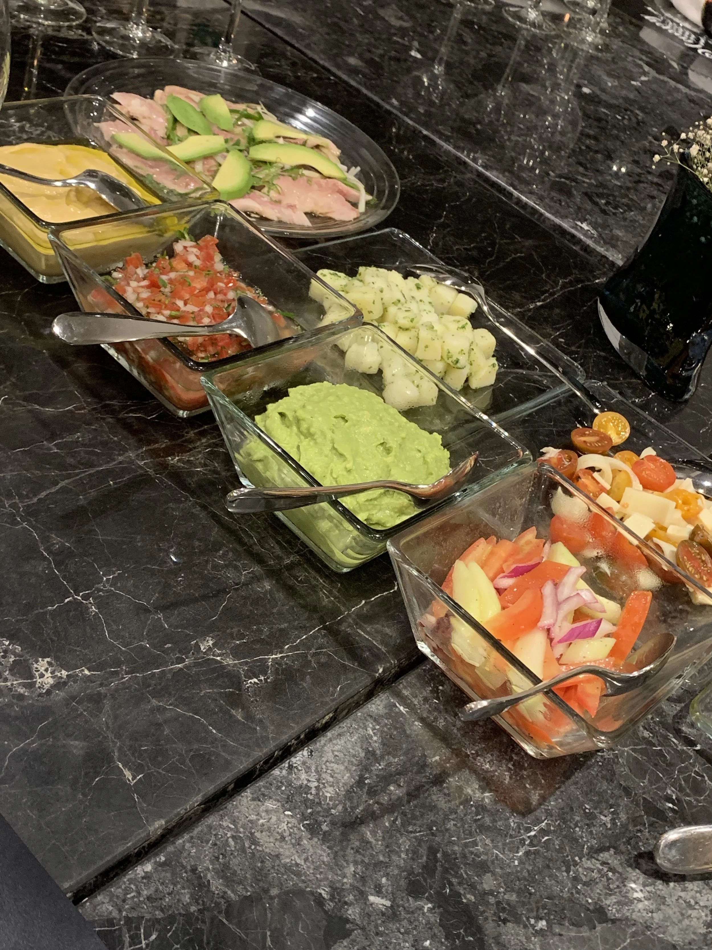 A gorgeous, elegant , zen like atmosphere. John Travolta and family were sitting next to us, ah ha - a star sighting!! Ordered - Bluefin Tuna Sashimi , melt in your mouth delicious - whole Peking duck- I actually think it was better than the Peking duck I tried in Beijing. The chef came out and carved the duck table-side, served with rice pancakes along with julienned scallions and cucumbers. Winner, winner!